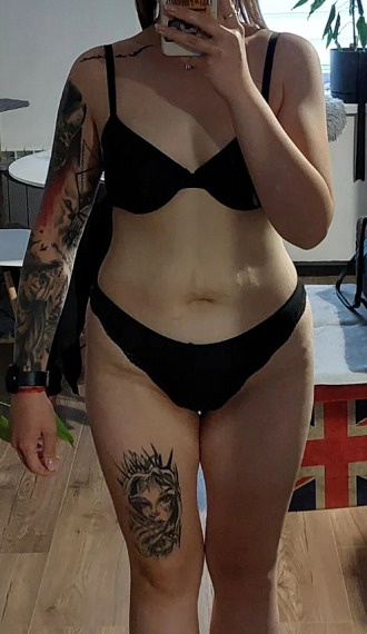 „Když vidím, jak jsem byla na té staré fotce zkroucená s ramenem dole, je mi z toho úzko. Těch 25 kilo navíc mě doslova táhlo k zemi. Teď stojím rovně a cítím se mnohem líp. I to tetování na paži konečně vypadá k světu, když není na 'rosolu'. Ještě mi chybí posledních pět kilo k dokonalosti, ale už teď je to pro mě výhra.“